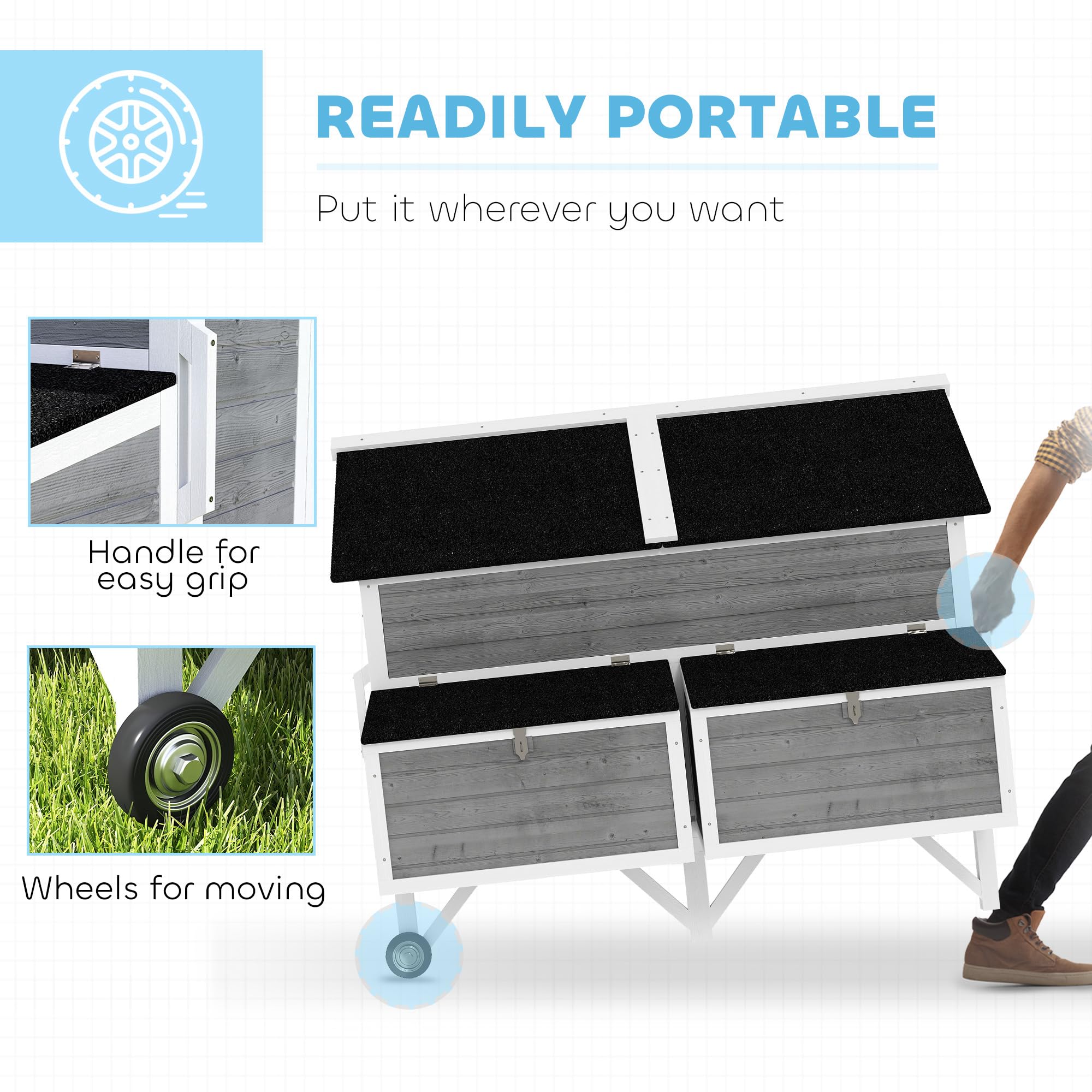 PawHut 59" Mobile Chicken Coop on Wheels, Mobile Chicken House with Handles, 2 Nesting Boxes, 2 Trays, 4 Perches, Chicken Tractor for 4-6 Chickens, Small Animals, Rabbit Hutch for Backyard, Gray