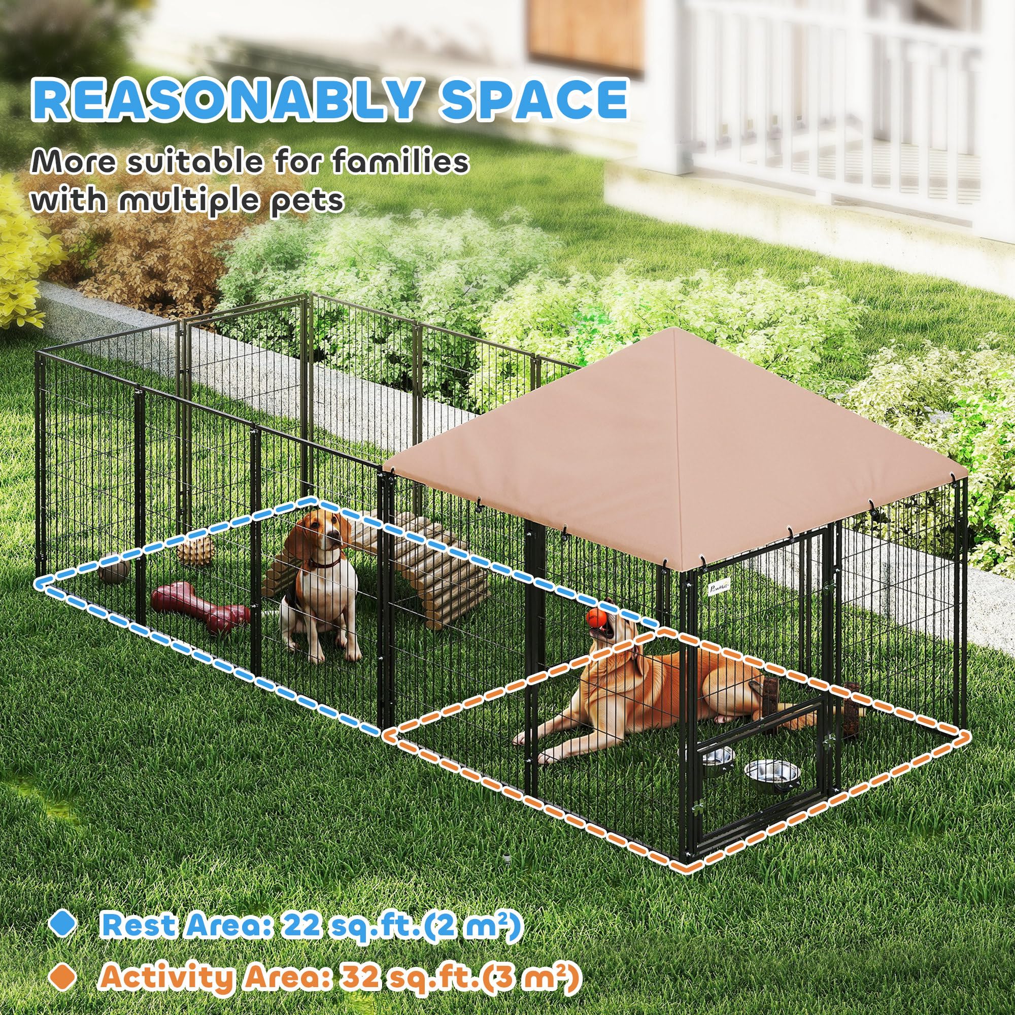 PawHut Dog Kennel Outside with 1 Room, Large Outdoor Dog Kennel Run w/Rotating & Adjustable Bowls, Waterproof & UV-Resistant Canopy, Welded Wire Pet Enclosure for Yard Garden, 11.3' x 4.7' x 5.1'