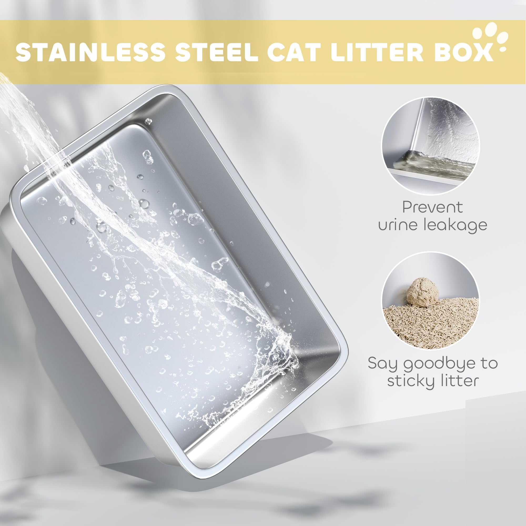 - Easy-to-Clean Stainless Steel: This cat litter box features a stainless steel tray that resists sticky litter and rinses clean with water, making daily cleaning quick and stress-free