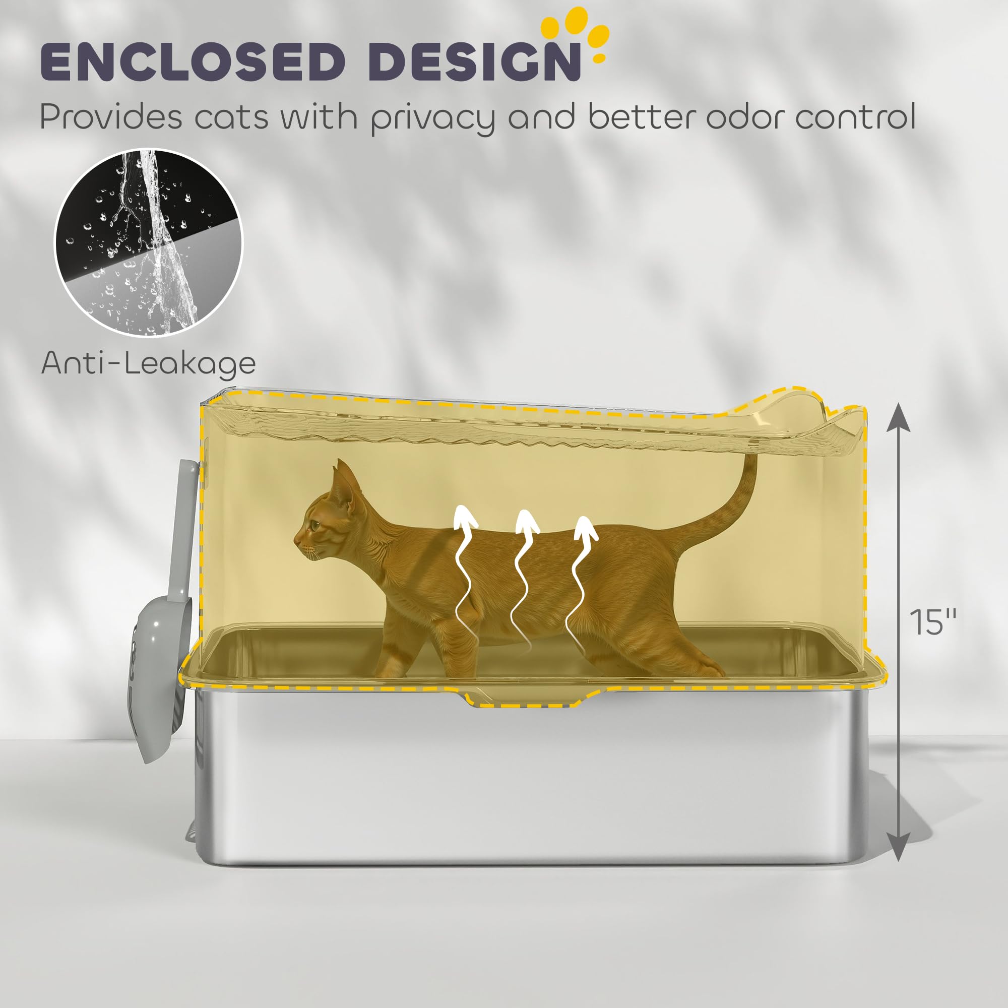 - Hygienic Stainless Steel Tray: This stainless steel cat litter box includes a tray that's easy to clean, promoting hygiene for your cat's paws, complete with a handy scoop for convenient cleaning